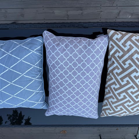 Pent brukte pynteputer til utemøbler kjøpt på Europris str 45x45cm selges hbo 100kr for alle 4. Kan sende med PostNord 69kr eller fiksferdig.