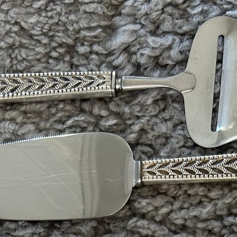 Kakespade med «tagger» på en side, 25 cm lange. Selges kr 590,pr stk