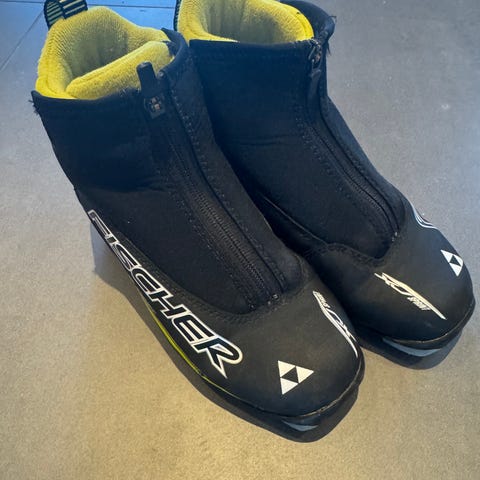 Nesten ubrukte nye Fischer langrennsko, kjøpt på Intersport i fjor.