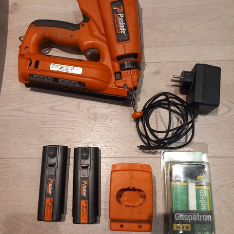 Lite brukt Paslode dykkertpistol på gass selges til fastpris,Brukt bare 2 år. Selges med ett batteri og lader.