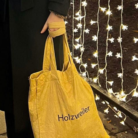 Skulderveske fra Hollzweiler. Stivt stoff. To rom og et lite med glidelås inni. Justerbar skulderstropp. Skjerfet er ikke originalskjerfet, kan fjernes. Hvite flekker på innsiden, se bilder.