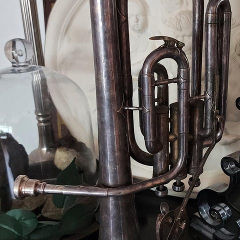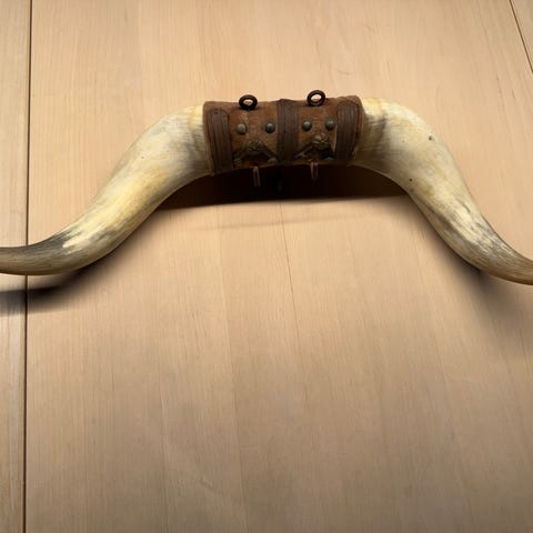 Selve horna er i god stand med bruksmerker, opplegget mellom horna er ikke i god stand.