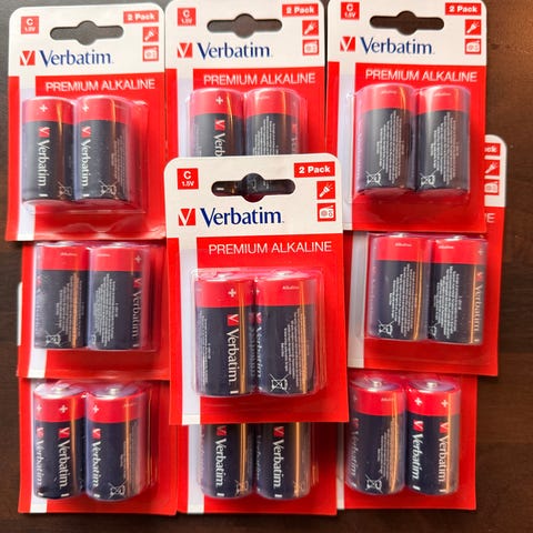 pga feilkjøp selger vi 6 pakker D-batterier, alle uåpnet bortsett fra ett (batteriene er ubrukte).