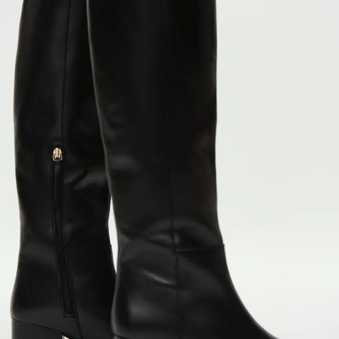 Thigh-high boots in Vegea™ faux leather with rounded toes. Zipper at one side. Satin lining, satin insoles, and rubber soles. Heel height approx. 7 cm