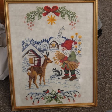 Nydelig håndbrodert juleløper og brikke i samme mønster. Nytt/ubrukt. Ingen merker eller flekker.