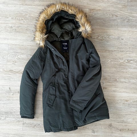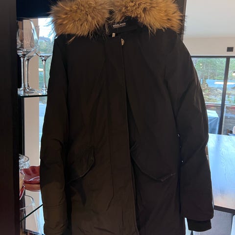Pent brukt. Ikke renset, kun vasket over med fuktig klut. Avtagbar krage. God og varm vinterjakke i fin grønnfarge. Noe slitasje ytterst rundt håndleddet, se bildene. Mye bruk igjen, men henger for mye i skapet.