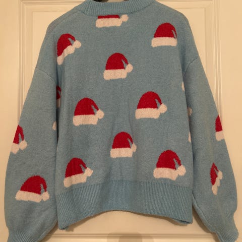 Kjempesøt genser med glitter, papegøyer, elefanter og ugler fra Malina Wong. Vaskelappene er klippet bort, men står 44 på størrelse, men passer mindre. Viser tegn på bruk og vask i fargen samt lapp i kragen har tatt til seg litt farge.