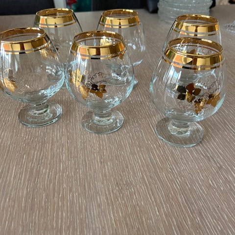 6 stk Cognacglass. Høyde 11 cm, diameter 8 cm.