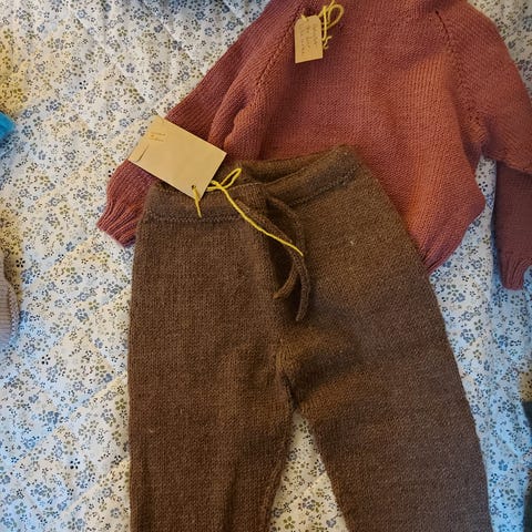 Hjemme strikket barn klær se bilder for pris og størrelser. Skriv gjerne om en ønsker mer info. Strikker for julemarked. Noen ser litt krøllete ut men pga vært pakket ned for å frakte.