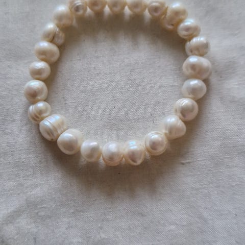 Helt nytt perlearmbånd fra Chanti. Armbåndet er aldri blitt brukt. Det er 17 cm langt, består av erteformet ferskvannsperler i hvit / lyserosa farger med lås som består av sølv. Armbåndet har en matt skinnende effekt og er veldig solid montert sammen, lagt til å vare lenge. Orginaleske følger med. Armbåndet er kjøpt på nettsiden chanti.no. Selger det da det er for lite til meg og at noen andre kan få gleden av det.