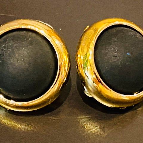 Svarte plast ørepynt med ‘diamant’ fra det glade 70 tall!😀