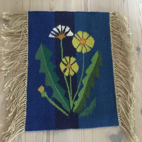 Noen tråder løsnet nederst, men dette er enkelt å feste til med en stoppenål og knyte. Gjelder halvparten av siste rad nederst. Se bilder. Selges rimeligere pga dette.