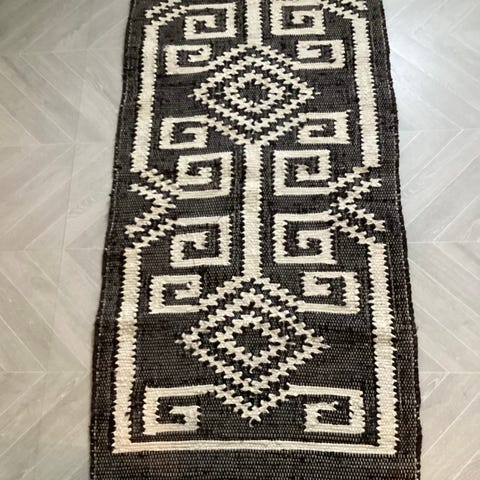 De to teppene er like. De måler 1,9 x 1,4 cm. Teppene skal kunne vaskes ("håndvask"), ikke gjort så langt. De ble brukt en kort stund da de var nye, men pga. diverse oppussinger har de nå ligget lagret i mange år. Det ene teppet har muligens en liten flekk, setter derfor noe lavere pris på dét.
