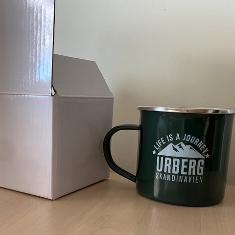 Emaljmugg 340 ml er en klassisk emaljkopp fra Urberg. Emalje motstår smuss og flekker og er perfekt for både mat og drikke. Rommer 340 ml.