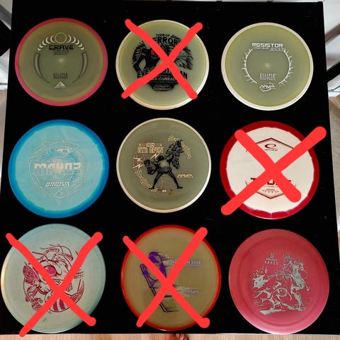Hei! Jeg selger mange nye og pent brukte discer og noen sekker til discgolf/frisbeegolf som trenger nye eiere! 🥏