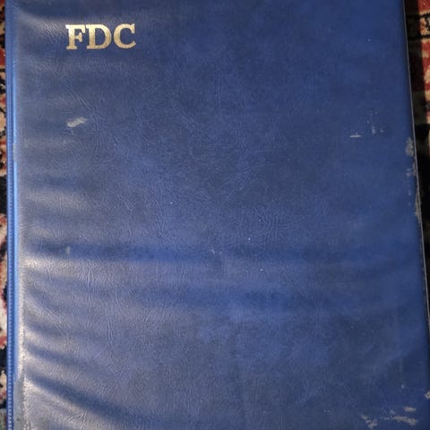Facit Norge perm med endel frimerker. Se bilde for eksempler fra de første sidene.