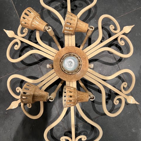 Messing lysestake for vegg, skjelden, flott handverk. Mål høgde 25 cm. Bredde 13 cm.