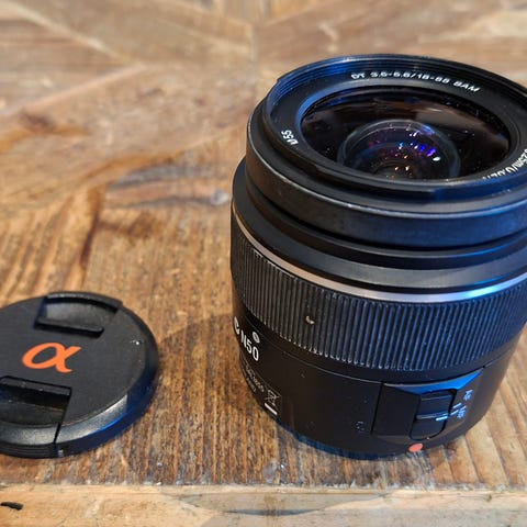 Leveres med innebygget motlysblender, bakre og fremre objektivdeksel samt futteral og original embalasje.