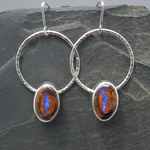 Sølv ring med naturlig Boulder opal.