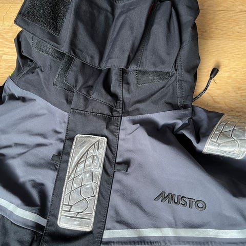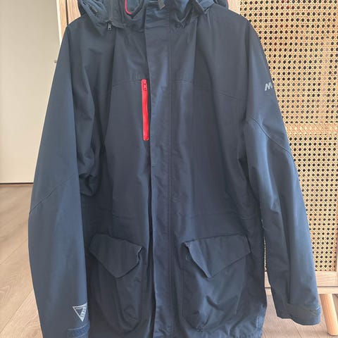 Pent brukt seiljakke. Foret, lommer, refleks og vannlås på armene