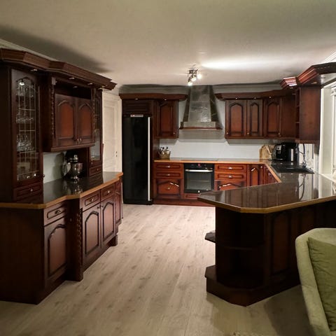 Ønsker å kjøpe diverse skap og deler til Kvalsvik kjøkken med profil som vist på bildene her. Luta furu. Kan gjerne demontere.