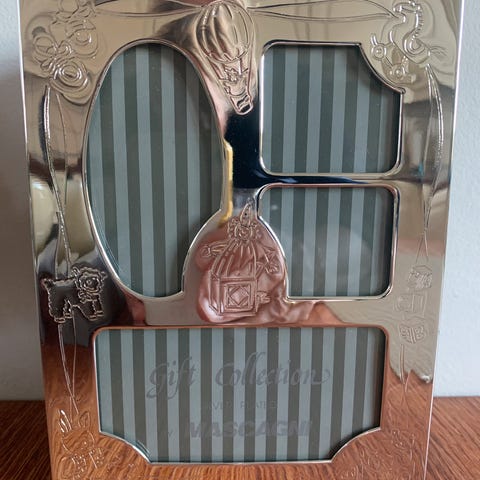 Fotoalbum til barn i tinn og mørk blå velur med hvite nøytrale ark for innliming av bilder etc. Fått i gave men aldri brukt. Oppbevart i eske i flere år. Ikke i produksjon lengere. Kan brukes til både jente og gutt.