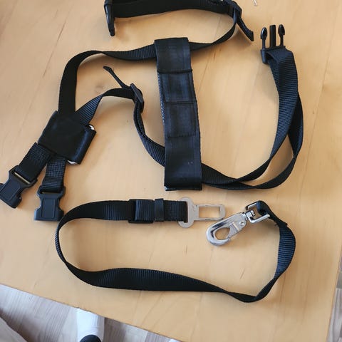 Står ikke størrelse på, men passer hund rundt 8-10 kg