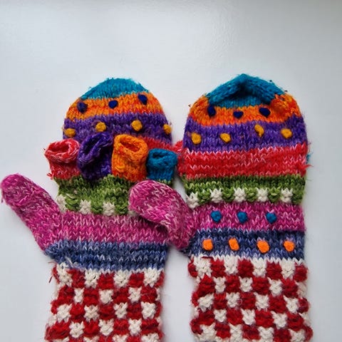 Deilige tova votter med tulipaner med friske farger. Fine nÄr som helst og passer godt til pÄske.