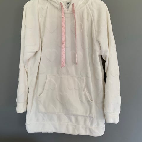 Pent brukt! Litt tynnere stoff enn collegegenser og kan fint også brukes for å sove i. Fargen er en blanding av lys gammelrosa og beige.