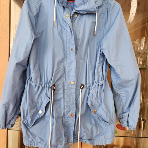 En fin overgangsjakke i lyseblå farge. Den er myk og deilig .