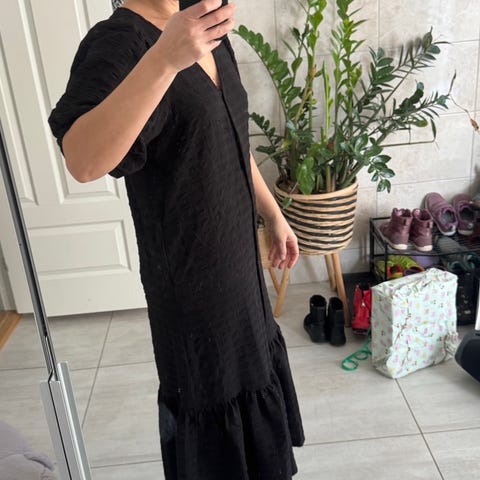 • Fin black kjole i praktisk stoff som gir en dress følelse, men samtidig passer til uformelle anledninger. Kan brukes i kombinasjon med en topp (under).