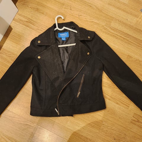Mørk blå jakke fra Adidas i ull. God, men pent brukt.