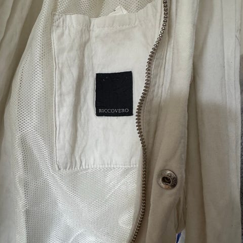 Jakke/kort trench fra Riccovero for herrer. Ingen lapper som angir str, men passer en vanlig L/40. Passer til tidlig høst eller vår.