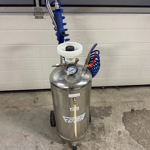 Beholderen på 45 liter lar deg tømme og fylle igjen ved hjelp av trykklufttilkoblingen på beholderen.