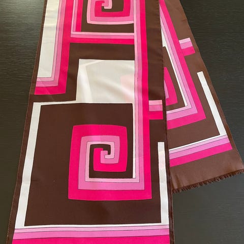 Tynt og mykt vintage halstørkle i nydelige farger, gammelrosa/brunt.