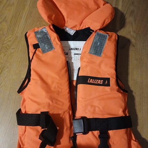 2 stk lite brukt, oppblåste, redningsvester til salgs kr 500,- pr stk.