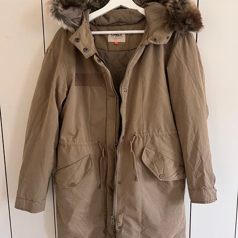 God, varm jakke med hette med fuskepels (både hette og fuskepels kan tas av). Fire lommer. Toveis glidelås.