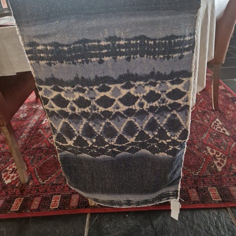Dekorativ bordløper i rosafarget aida med hvite broderier