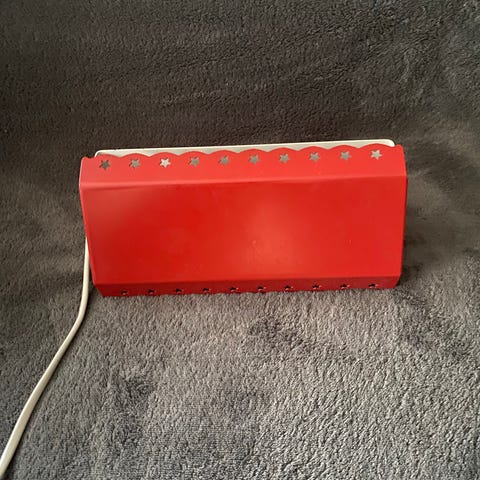 Lampen skrus til vegg, bokhylle el. med to skruer.