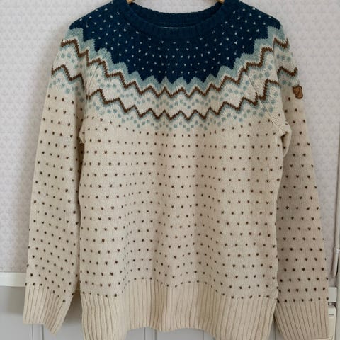 Lys gul/grå Ulvang, round neck, Mariusgenser. 100% ull.