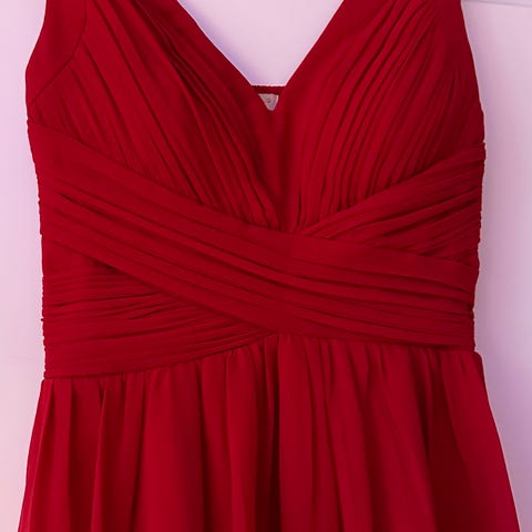 Nydelig korallfarget ballkjole. Avtakbare stropper og strekk i ryggen. Kun brukt en kveld, men har en flekk framme og helt nederst på kjolen + et par løse tråder, de jeh k