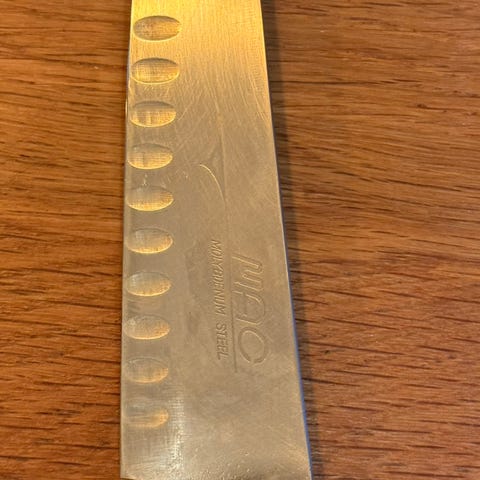 Selger en kokkekniv eller kløyver er kanskje mer riktig ord. Tung og solid kniv som tåler å skjære harde matvarer. Mac global masahiro