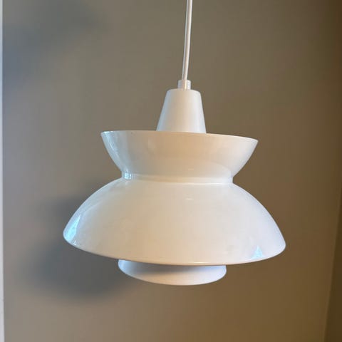 Lampa er kjøpt på en lokal butikk på Torshov i Oslo. Den har hengt over et kjøkkenbord i ca 5 år (husker ikke når den ble kjøpt). De siste 5 årene har den vært pakket ned i en eske. Lampa er pent brukt og fungerer som den skal.
