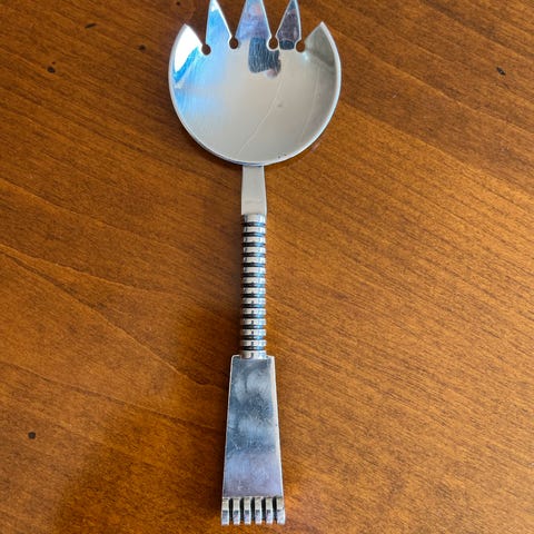 Skjeen er 18 cm lang og veier 41 gram. Skjeen er uten rifter eller andre skader. Flott skje