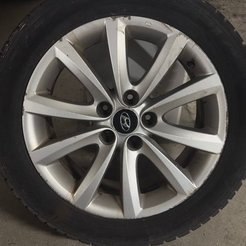 Ene felg har litt riper/skader