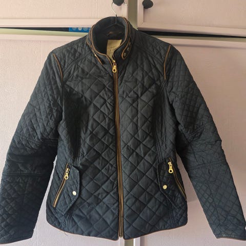 Selger en elegant quiltet jakke fra Days Like This i størrelse M. Jakken er klassisk og tidløs, perfekt både til hverdag og mer formelle anledninger. Den har en mørk gråbrun farge, glidelåslommer, og fine detaljer som knapper på ermene.