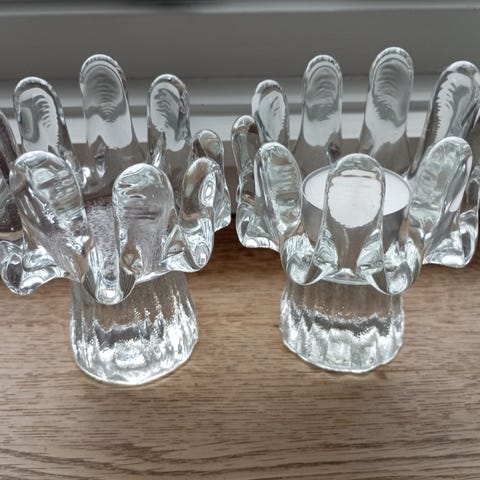 Har tre stk. tunge og solide lysestaker i glass. selges samlet.