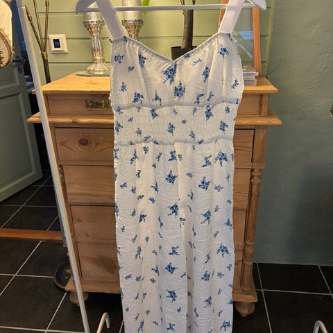 Søt marineblå og hvit jumpsuit/romper i paisleymønster fra H&M i størrelse XXS. Kan muligens også passe størrelse XS. 100% viskose, veldig behagelig på.