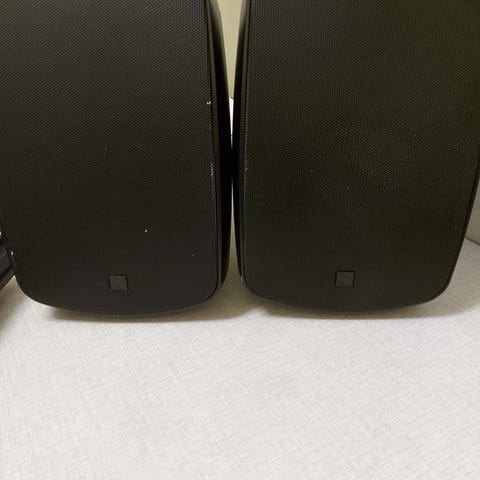 Helt nye høyttalere til utebruk. Hvite. Det følger med braketter til feste og en fjernkontroll (Russound ST2-RC).