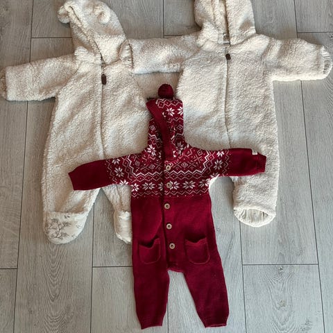 2 sett med body, bukse og genser med julemotiv fra H&M. Passer til jente og gutt
